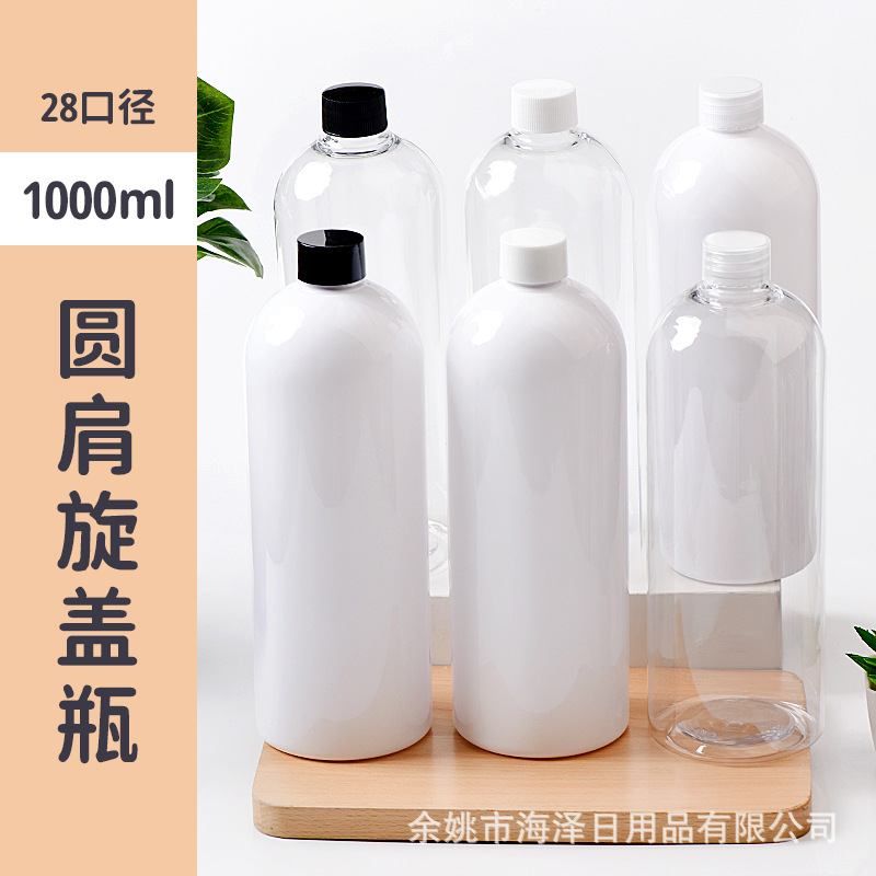 1000ml丸肩28口プラスチックpetボトルキャップ付き液体ローションボトル純水ボトル大容量ボトル