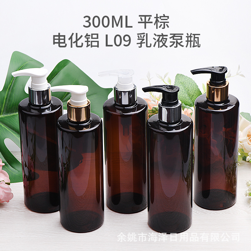 300ml平肩瓶プラスチックpet瓶と電気化アルミ乳液ポンプ、電気化アルミねじポンプ、消毒液瓶