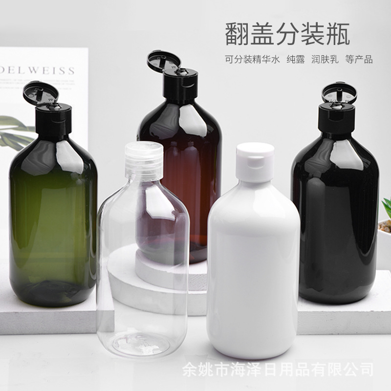 500mlの細い首の瓶の28歯のプラスチックのpetの液体の瓶はふたをひっくり返して純粋な露の瓶の入浴する乳の瓶を洗って液体の瓶を掃除します。