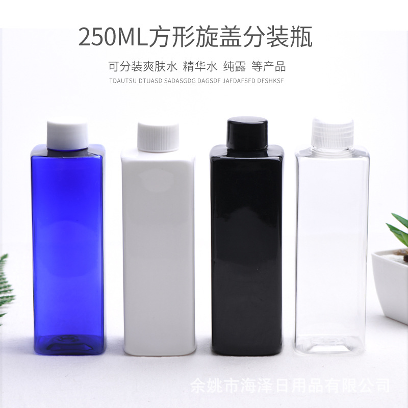 250ml角型プラスチック24口petキャップ付き液体ローションボトル内栓消毒液ボトルペットボトル
