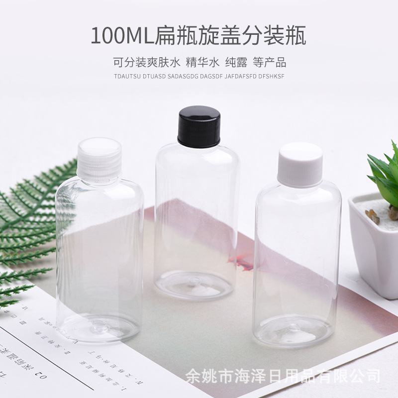 100mlのフラットな20口のプラスチックpetの蓋には、プラグ付きの精華液瓶押出瓶消毒液瓶があります。