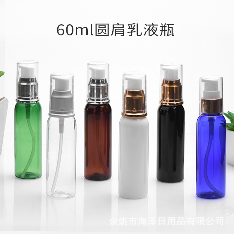 60ml丸肩20口プラスチックpetボトル電化アルミパウダーポンプ入浴露瓶ローションボトルボディー哺乳瓶