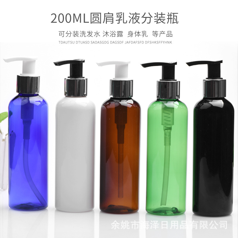200ml丸肩24口プラスチックpetボトルと電化アルミスイッチポンプ乳液ポンプ洗髪スキンケア露瓶