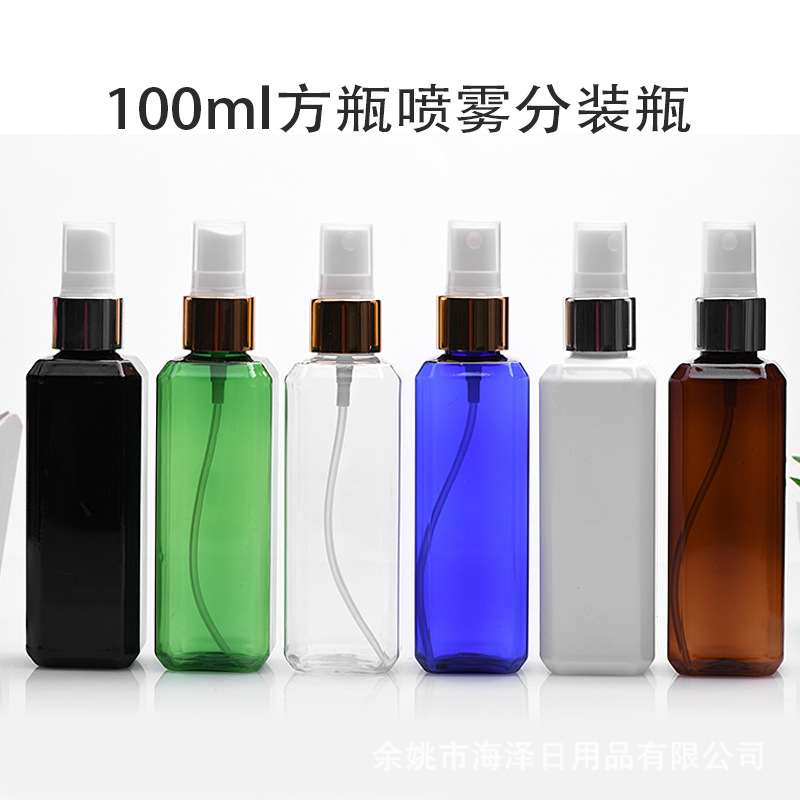 100ml角瓶20口プラスチックpetボトル電化アルミスプレーヘッド液体細いスプレーボトル化粧水ボトル分注ボトル