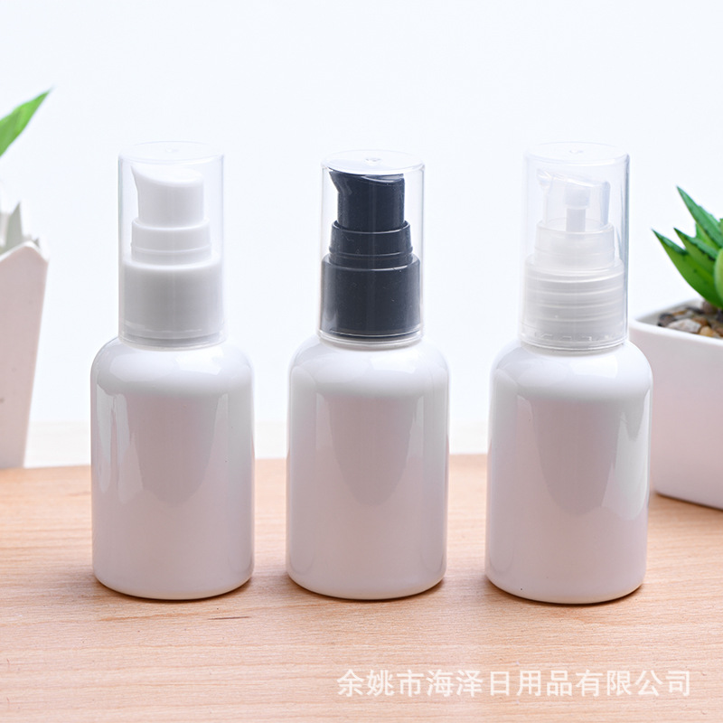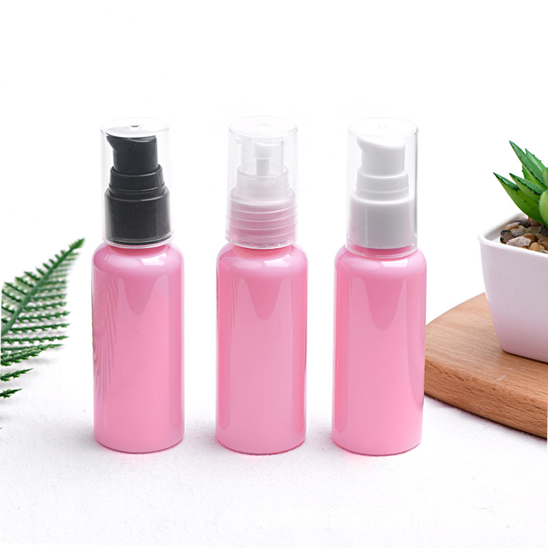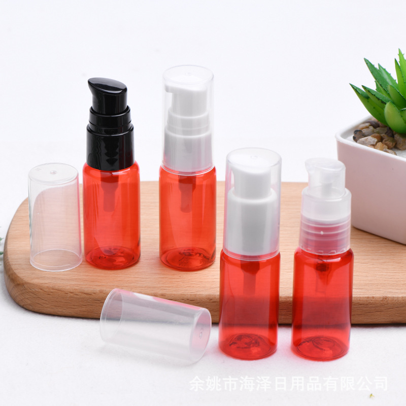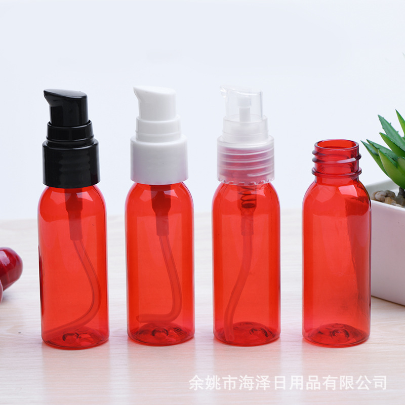 30ml丸肩赤20口プラスチックpetボトル鳥口全カバーpp粉ポンプ、分注ローションボトル上化粧哺乳瓶