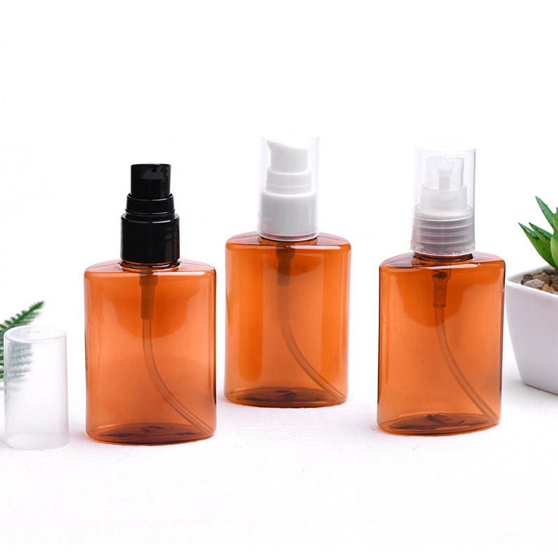 60ml直角平瓶茶色20口プラスチックpet瓶鳥口全カバーpp粉ポンプ、精華液瓶乳液瓶