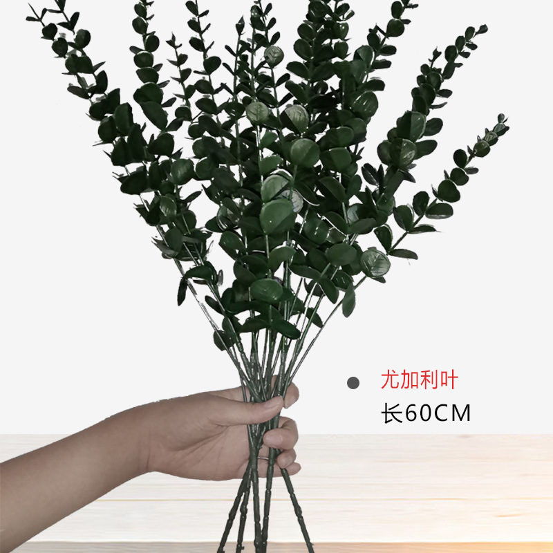 国境を越えたシミュレーション緑植尤加利金銭葉結婚祝いの家庭装飾人工ユーカリの葉の茎