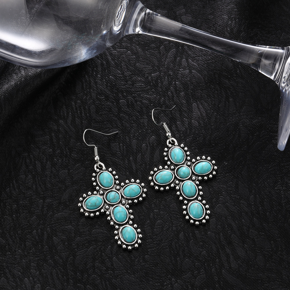 レトロなボヘミアン風の円形楕円形の緑松石のイヤリングのイヤリングのイヤリングのイヤリングのメーカーの直接販売のクロスボーダーの専用供給