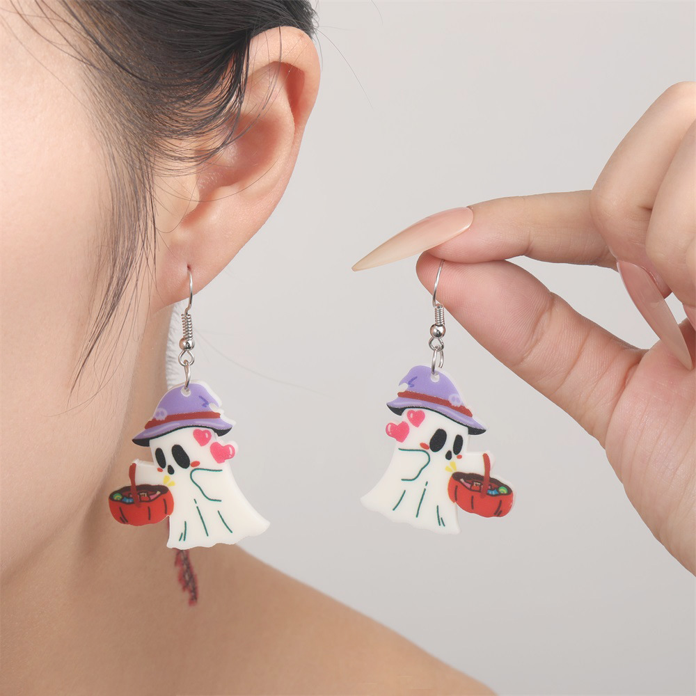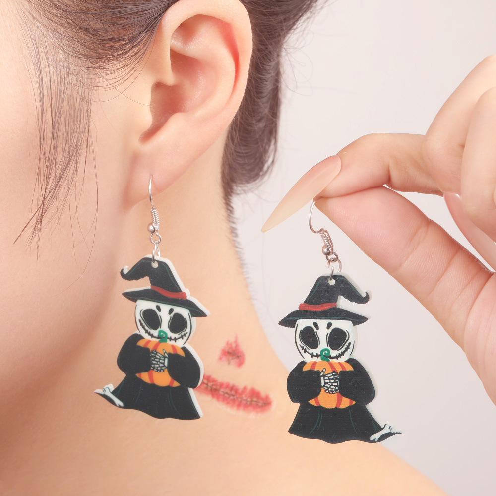 新しい環境保護アクリルイヤリング欧米の個性ハロウィーンカボチャ幽霊魔女黒猫耳飾り
