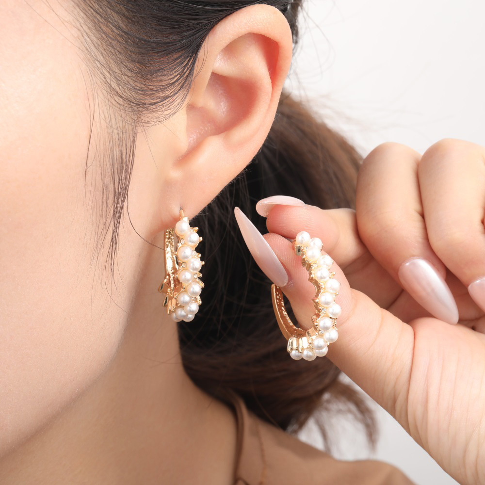 日韓人気モデル名媛風フランス風真珠イヤリング潮個性ステンレス耳針シンプルC型ファッション耳飾り