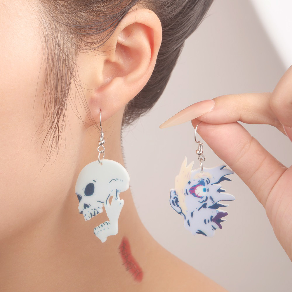 半ホストの新型環境保護アクリルイヤリング欧米のハロウィンのスカルの頭はびっくりして表情が非対称です。