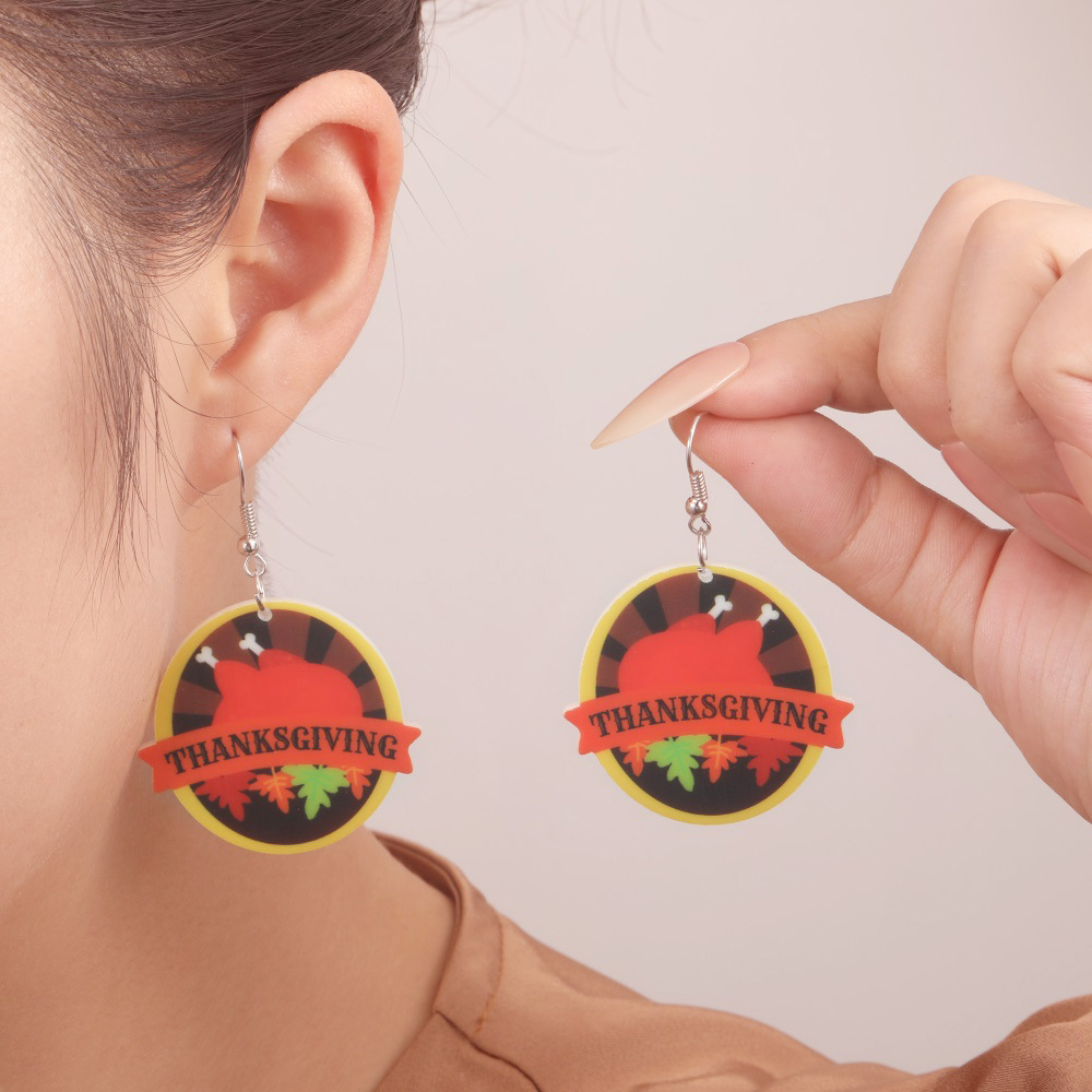 欧米の個性的な感謝祭の七面鳥のカエデの葉のイヤリングはすべて新型の環境保護のアクリルのイヤリングのイヤリングの卸売りを管理します。