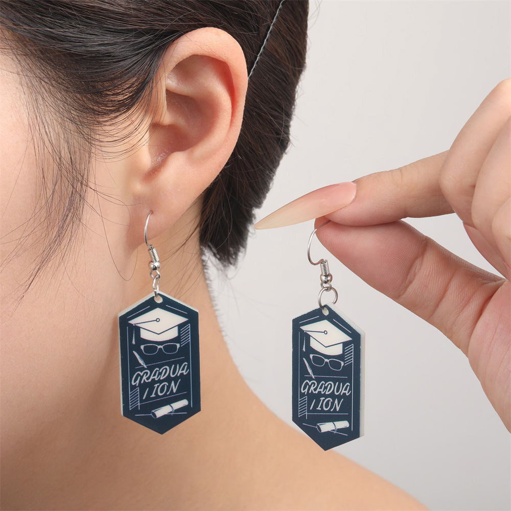半ホストの新型環境保護アクリルイヤリング欧米の個性卒業シーズンの筆の学士の帽子の幾何学の形の耳飾りの1対