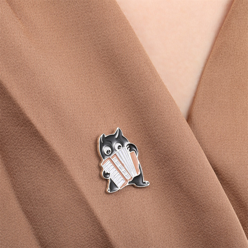 国境を越えた新しいクリエイティブブローチ漫画かわいい黒動物アコーディオン演奏造形合金滴油ブローチ