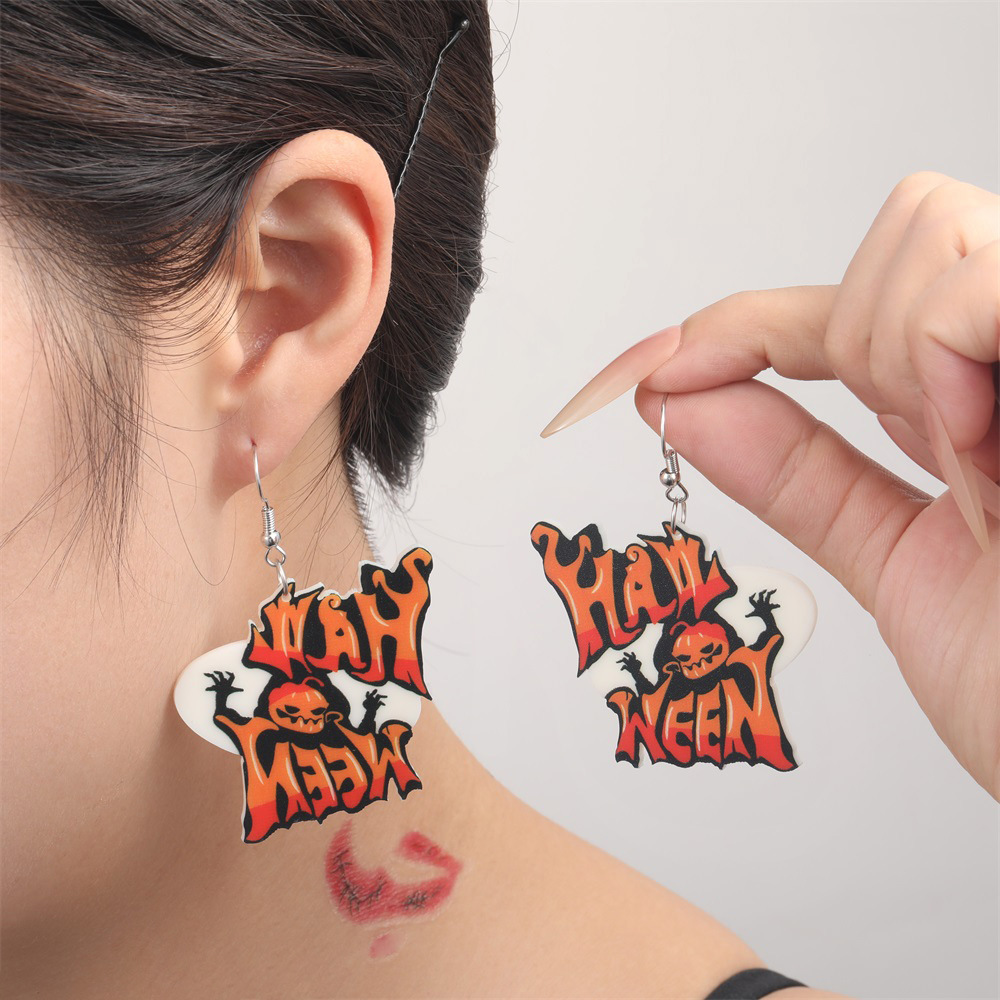 新しい環境保護アクリルイヤリング欧米の個性ハロウィーンカボチャ墓石頭蓋イヤリング耳飾り