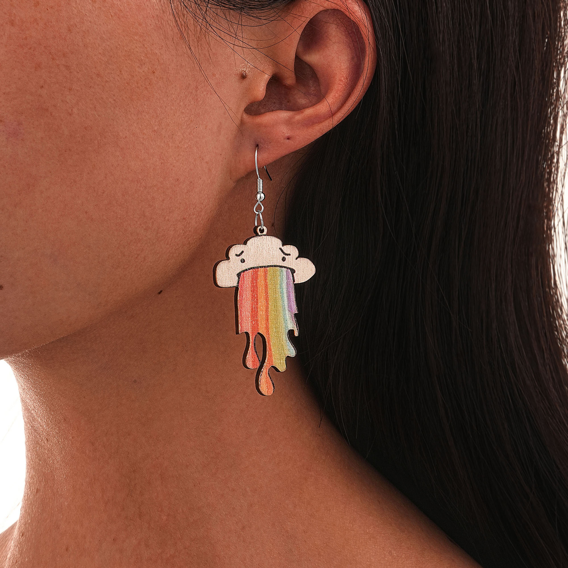 新型環境保護木製イヤリング欧米ファッションアニメ雲虹イヤリングメーカー直販