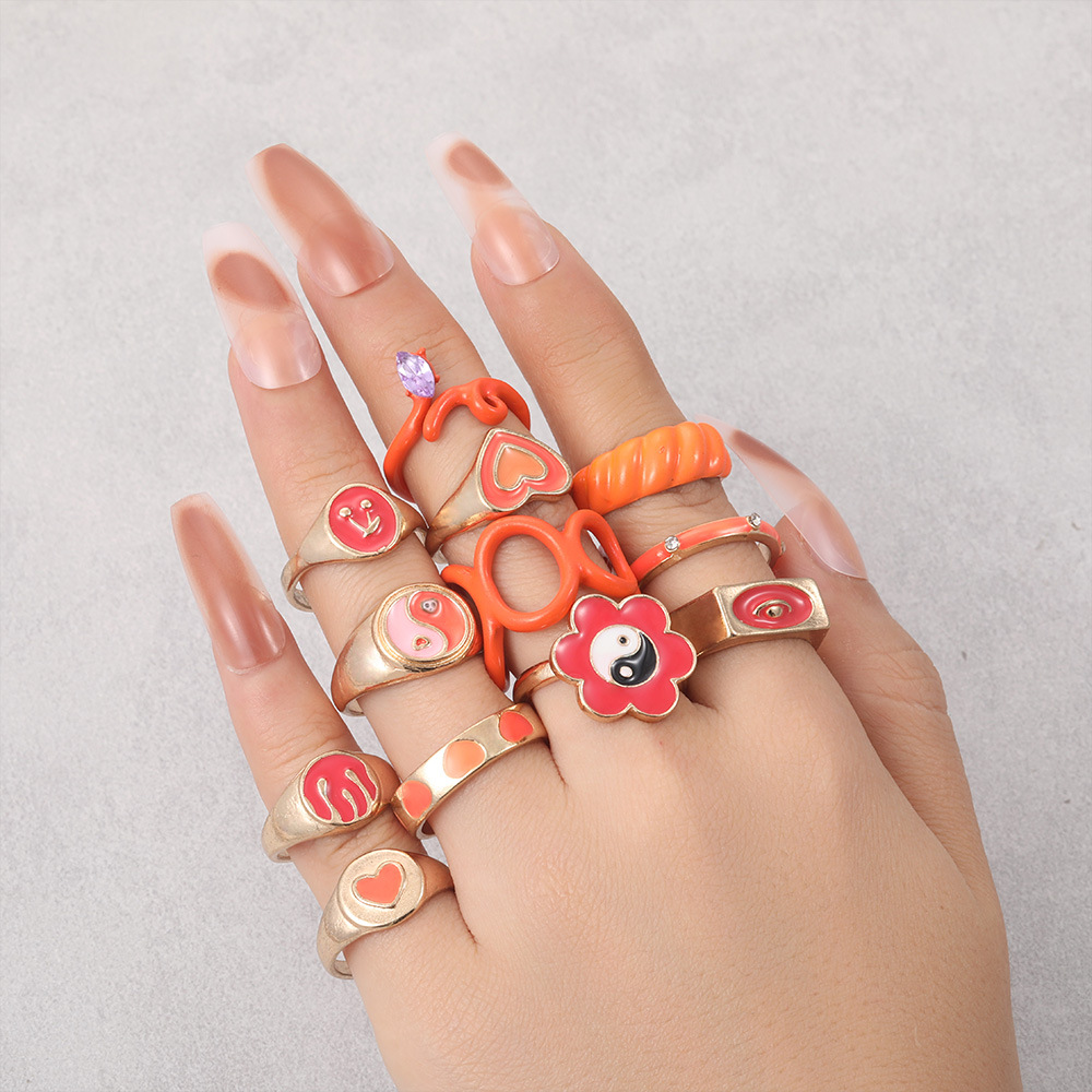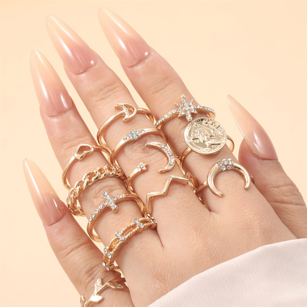 欧米の個性的な新型の指輪の三日月の葉の愛の透かし彫りの点のドリルの合金の12指輪のセットの手飾りの卸売り