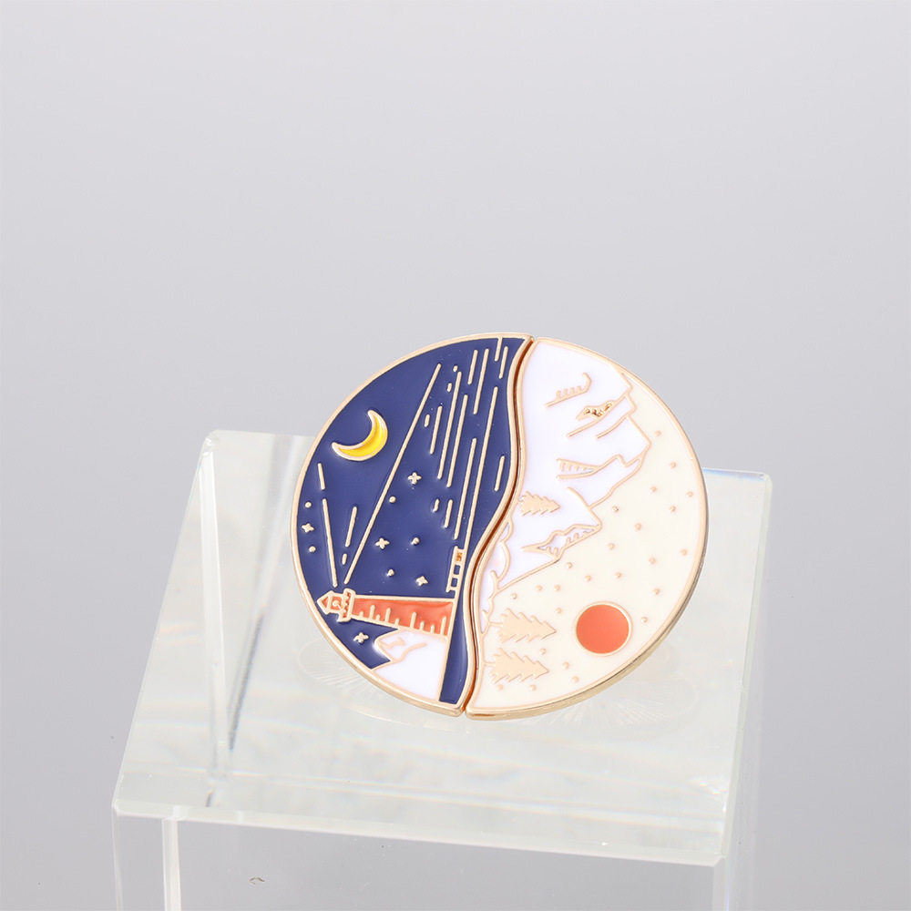 夏の新型環境保護ブローチ個性滴油灯台星空月太陽ステッチ円形カップルブローチバッジ
