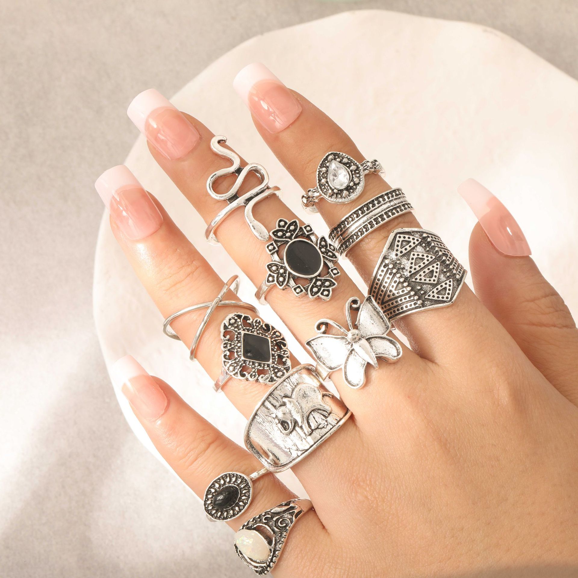 欧米の新しい組み合わせの指輪の復古の蛇の形の蝶の象はドリルをつけて11点のセットの指輪の装飾品を交差します。
