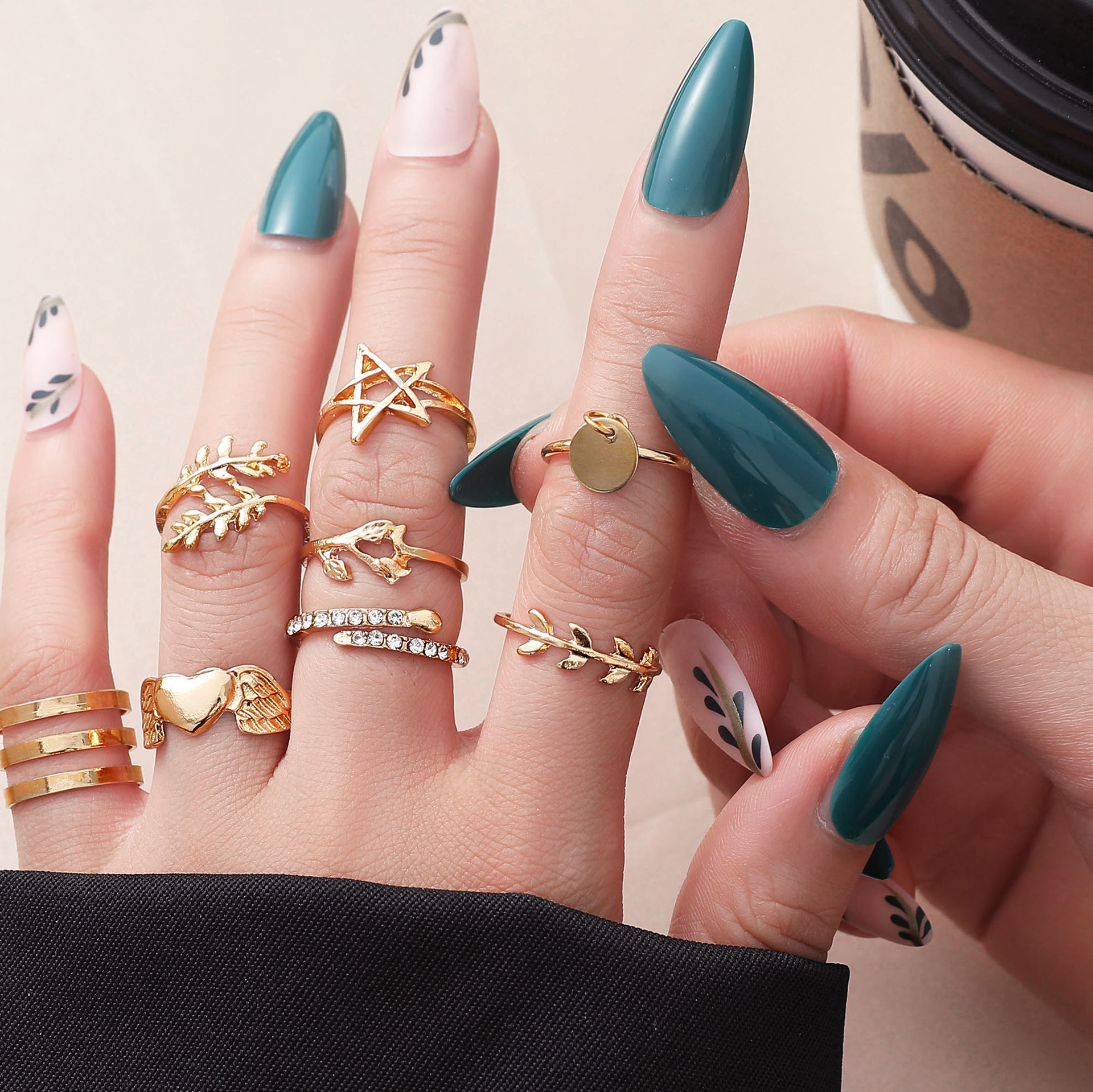 新しい欧米の組み合わせの指輪のファッション的な愛の葉の五角の星のドリルの開口部の10個のセットの指輪の装飾品