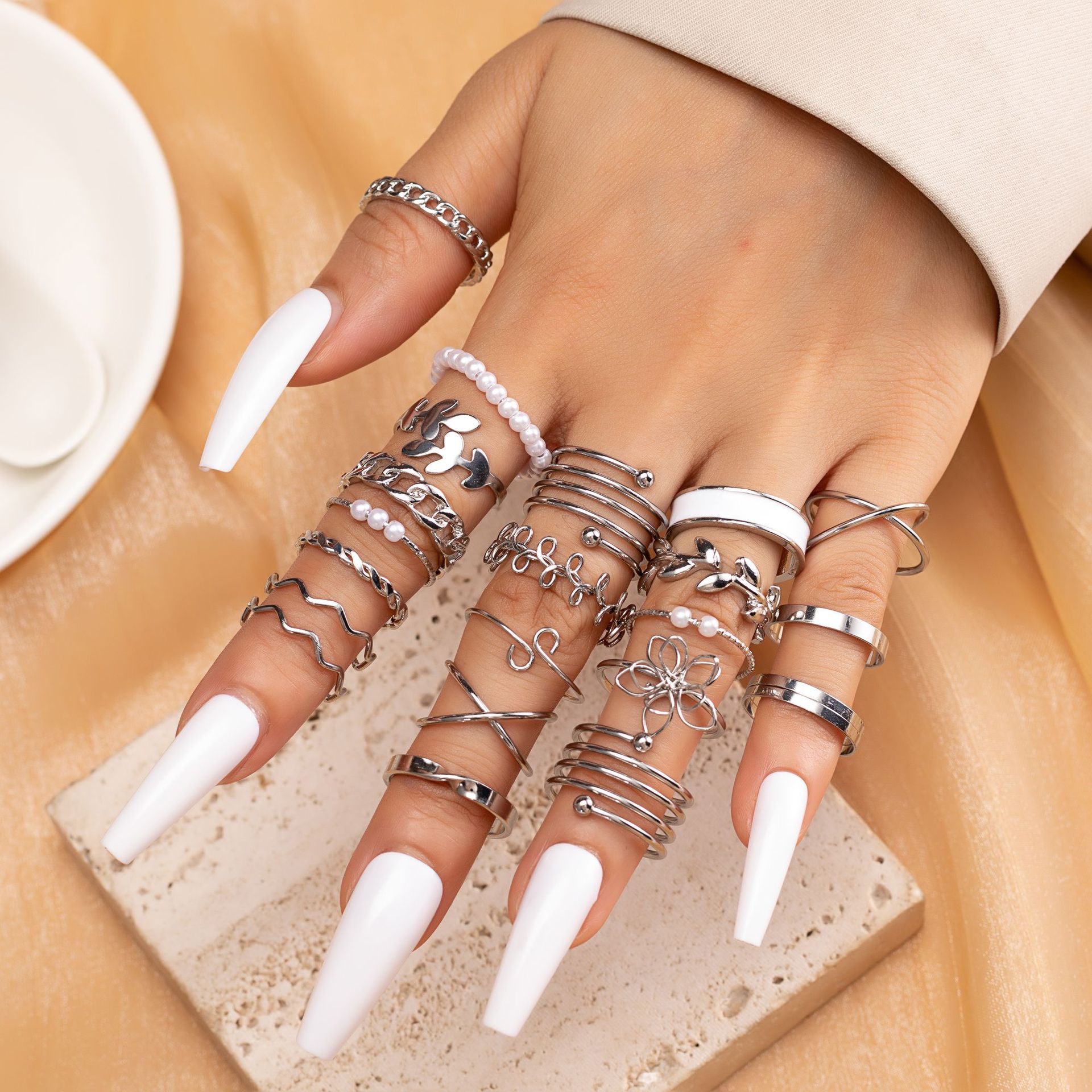 Wish新型指輪ファッション木の葉波多層交差透かし彫り開口21点セット指輪卸売り