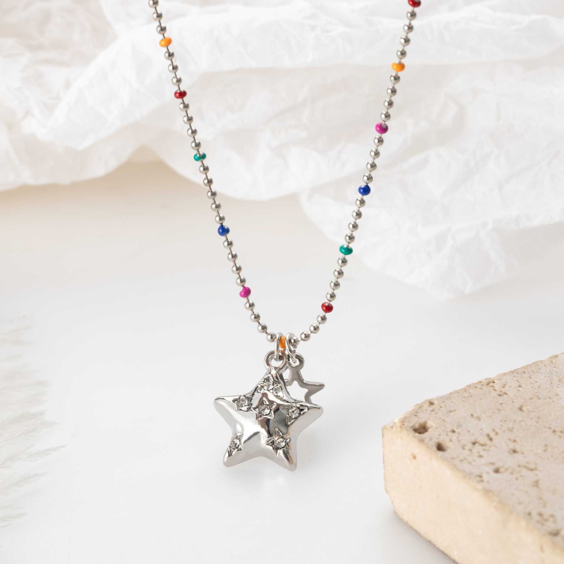 速売通の新型対外貿易ネックレスファッションカラービーズ星点ドリル透かしペンダントネックレスアクセサリー卸売り