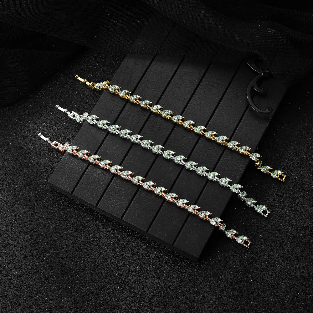 国境を越えたアマゾンの人気ブレスレット欧米のファッション的な贅沢な柳の葉の薄い緑色のドリルのブレスレットのアクセサリーの卸売り