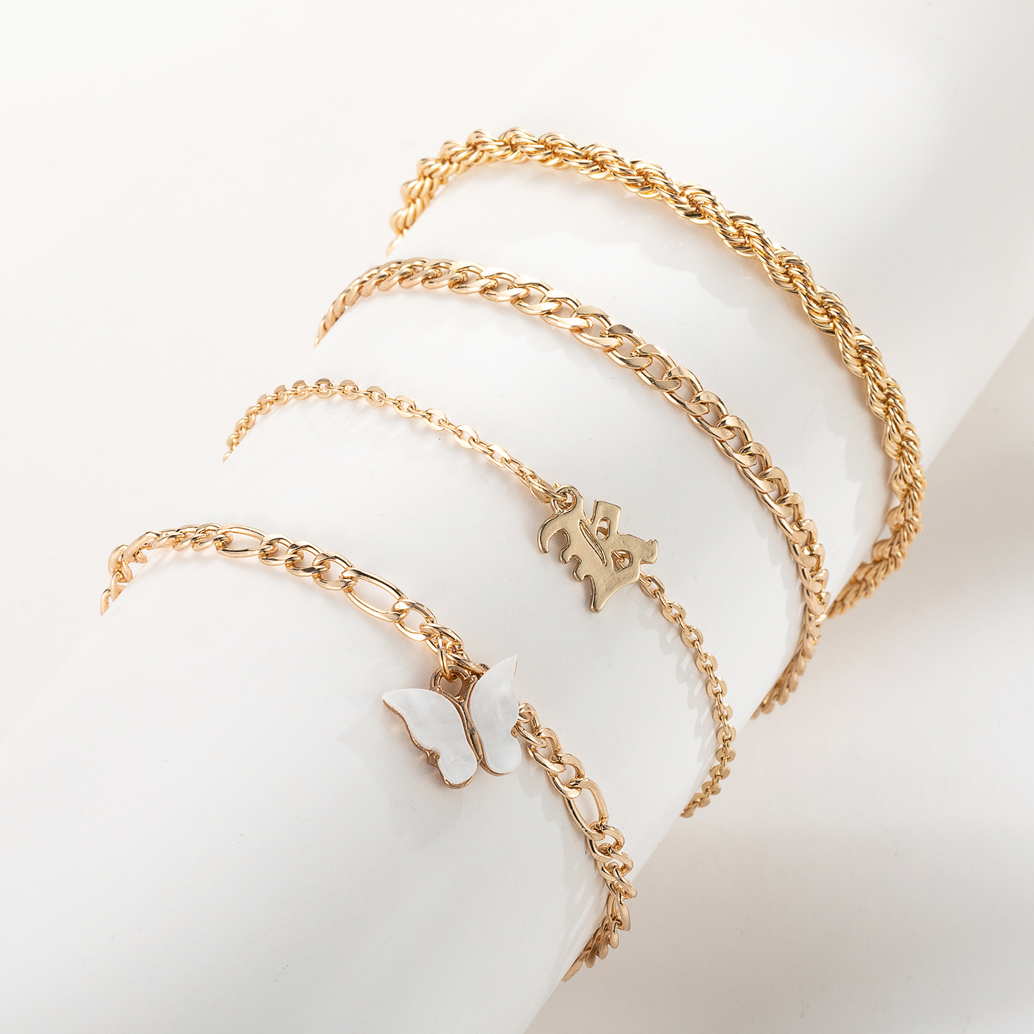 クロスボーダーの外国貿易の新型の足のチェーンのメーカーの直接販売の個性の金色の蝶は4つのセットの足のチェーンの足の装飾を調節することができます。