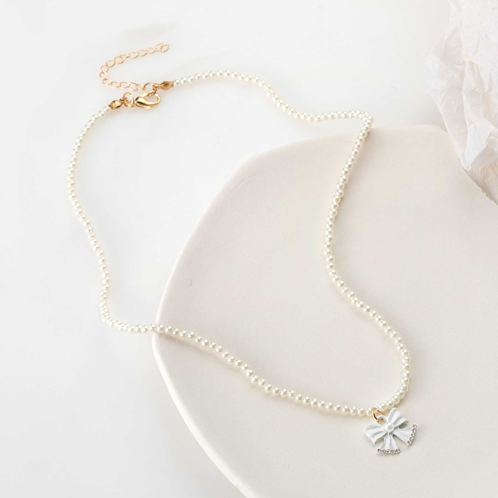 Wish新型ファッションネックレス清新で可愛い真珠ネックレス蝶結び点ドリルペンダントネックレスアクセサリー卸売り