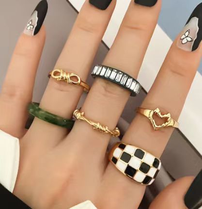 国境を越えた新しい棋盤格愛緑指輪6点セット欧米の甘い個性的なデザイン感指輪セット女性