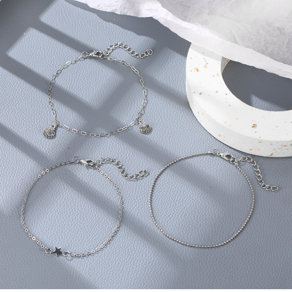 欧米の越境ファッションビーチの足のチェーンの個性は簡単です。貝殻の星の3つのセットの足のチェーンの足の飾りのメーカーは直接販売します。