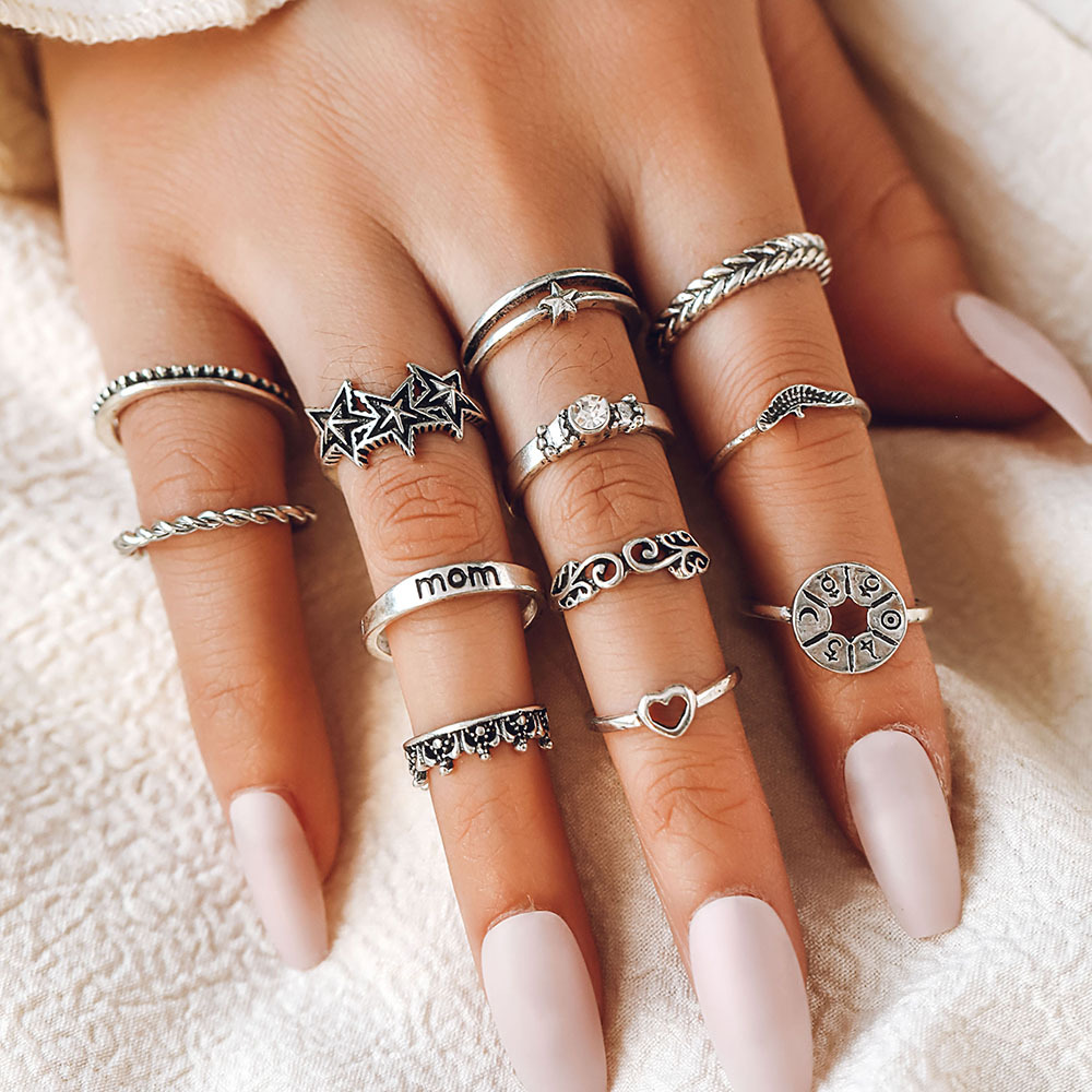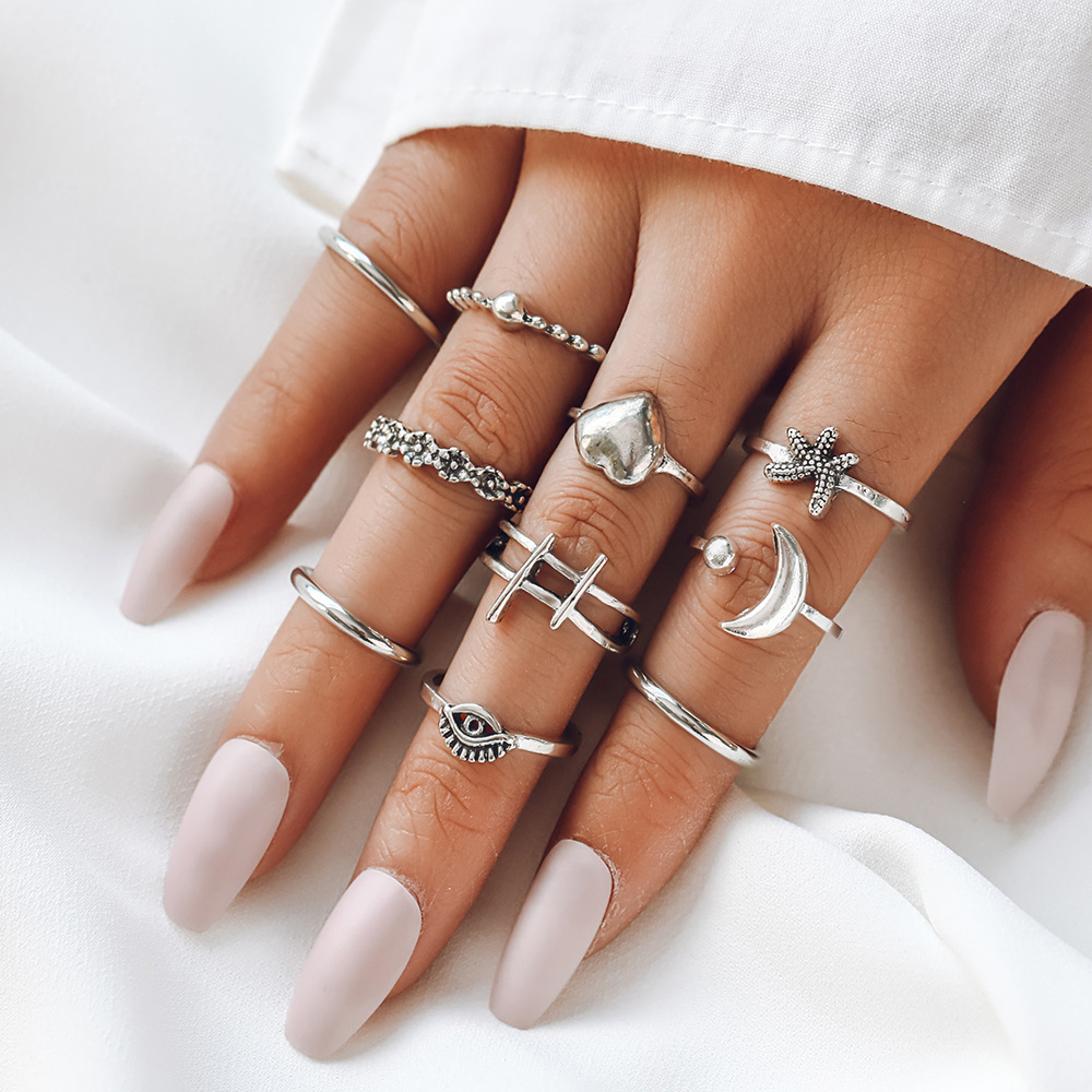 欧米のボヘミアン風海星芒三日月10点セットの指輪