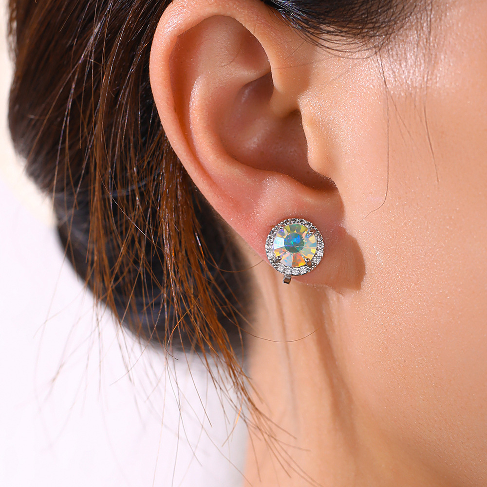 欧米の国境を越えたイヤリングファッションは円形の銅にジルコンの耳を入れて気質のカラーの耳の穴がない耳のイヤリングの女性を挟みます。