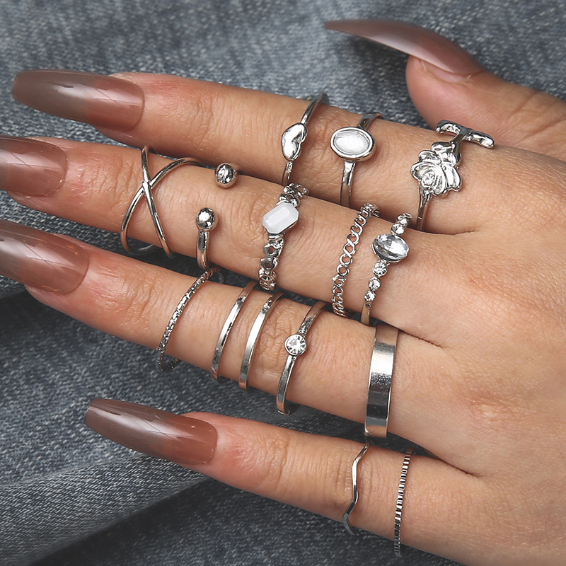 国境を越えて人気の開口真珠指輪欧米ファッションスプリング交差指輪誇張蓮の組み合わせ24点セットの女性