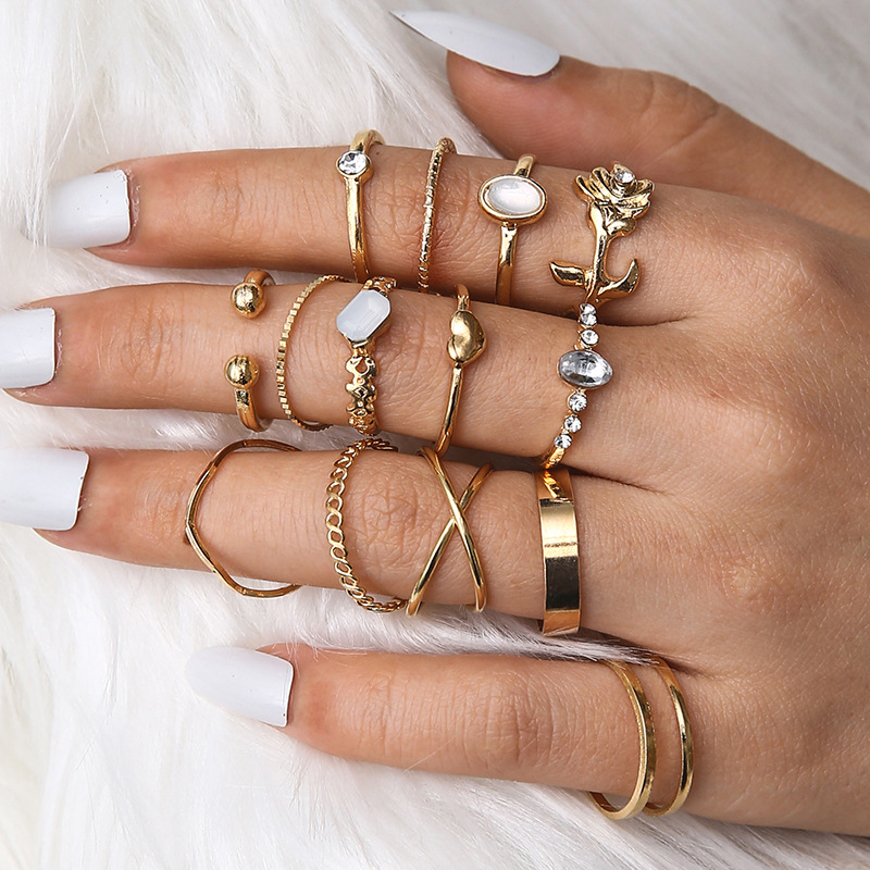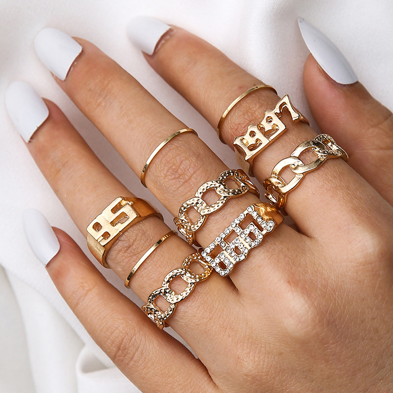 クロスボーダーの人気アクセサリーファッションのミニチュアの数字のリングの個性の簡単なチェーンの組み合わせの9セットの指輪の卸売り