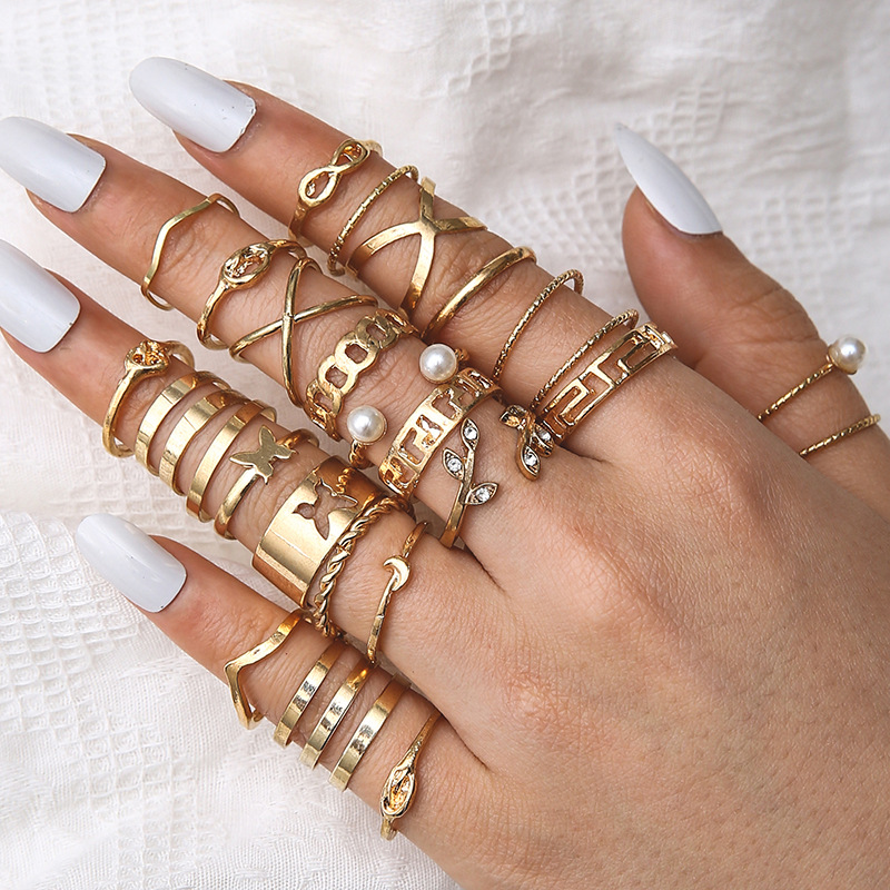 クロスボーダーの人気指輪ファッション真珠の広い版の蝶の指輪の個性の透かし彫りの交差の24件の組み合わせの指輪の卸売り