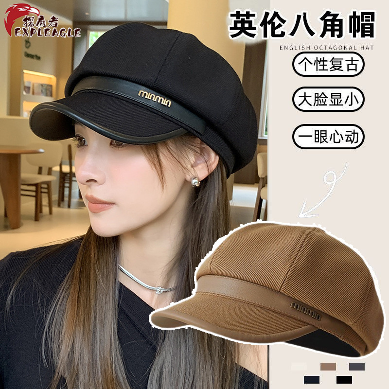 八角形の帽子の女性の春の夏のアヒルの舌の旅行の日よけの日焼け止めの帽子の英倫の復古の薄い金の通気性のベレー帽のins
