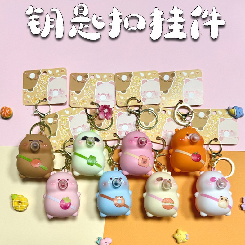 泡を吐くキーホルダーの正規版は、ストラップを遊んでいる子供のおもちゃをつまんで楽しむ男女のかばんを飾る必要がある