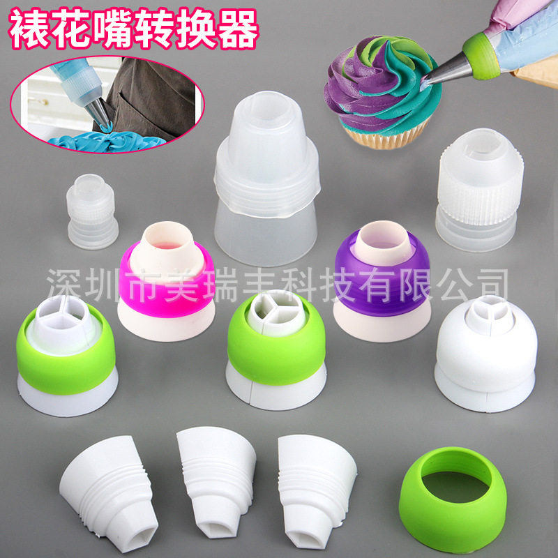 大中の小さいサイズの表装の花の口の変換器のクリームの口の変換の頭の3色の変換器はセットして各種の花の口を使って使います。