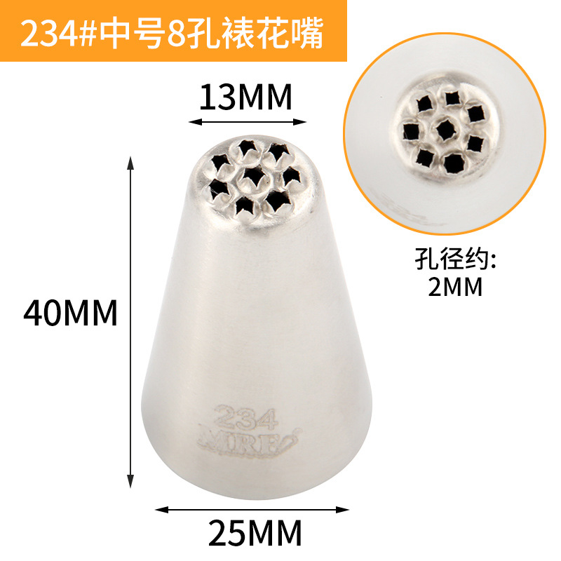 234 # 中号小草304ステンレス8穴表装口出し絞り器西点クリームケーキ表装装飾道具