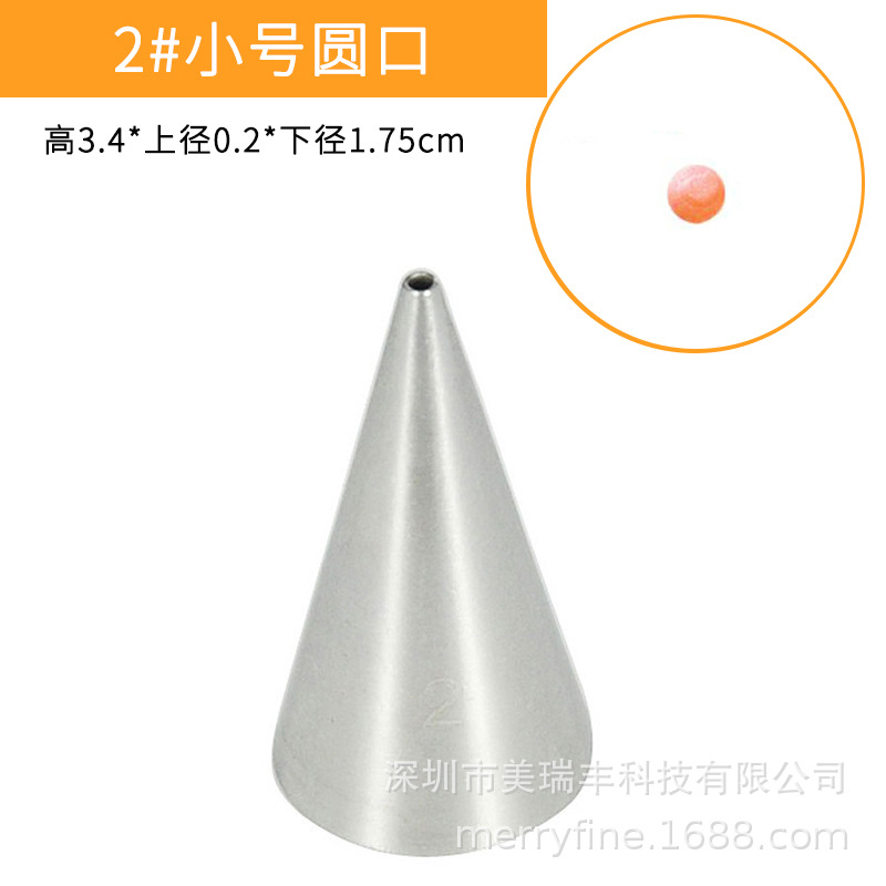 2番の丸い口のステンレスの表装の口のクッキーは字のクリームの口の丸い点を書いて辺をなぞって口を飾ります。