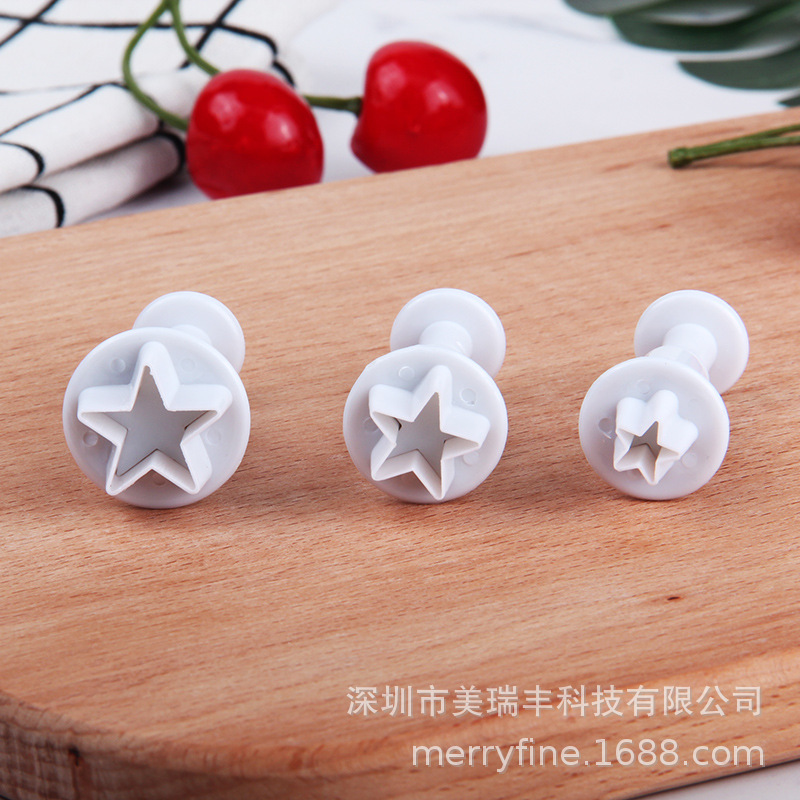 3pcs小さな星の五角星の砂糖ケーキのエンボス金型プリントカットクッキー金型diyケーキ金型