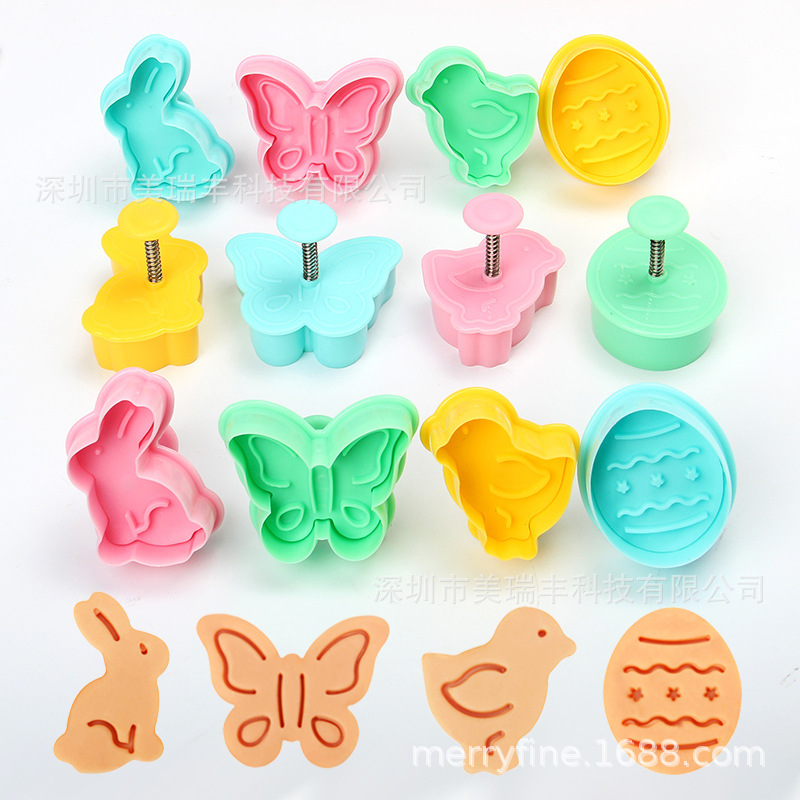 4点セット復活アニメ動物蝶ウサギ小卵スプリング押しクッキー金型果物切り型