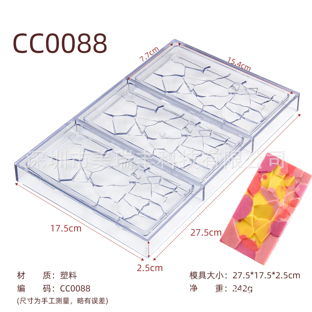 3連割れ砕塊チョコレート金型PC透明ハードプラスチック果乾朱古力長角焙煎金型-CC0088