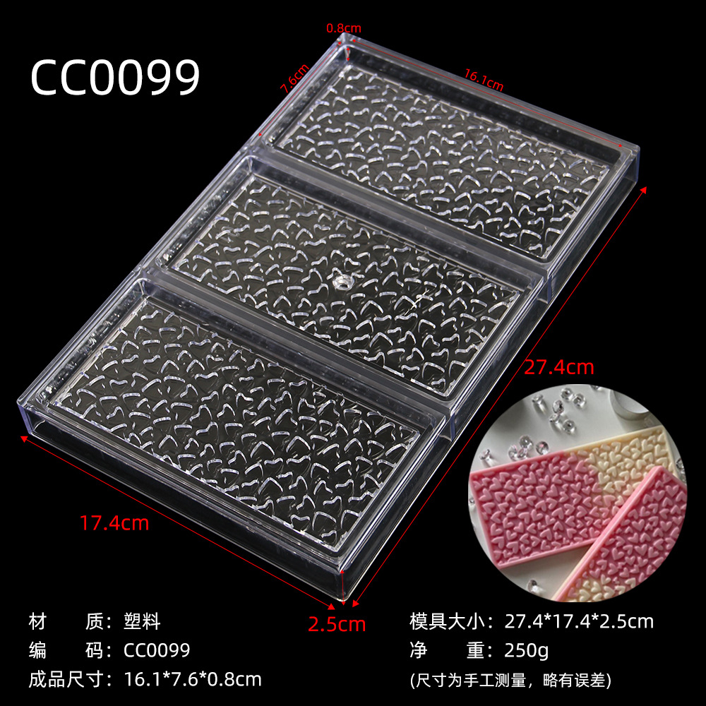Cc0099ハート型ハート型チョコレート長方形金型チョコレート氷砂糖金型硬質プラスチック