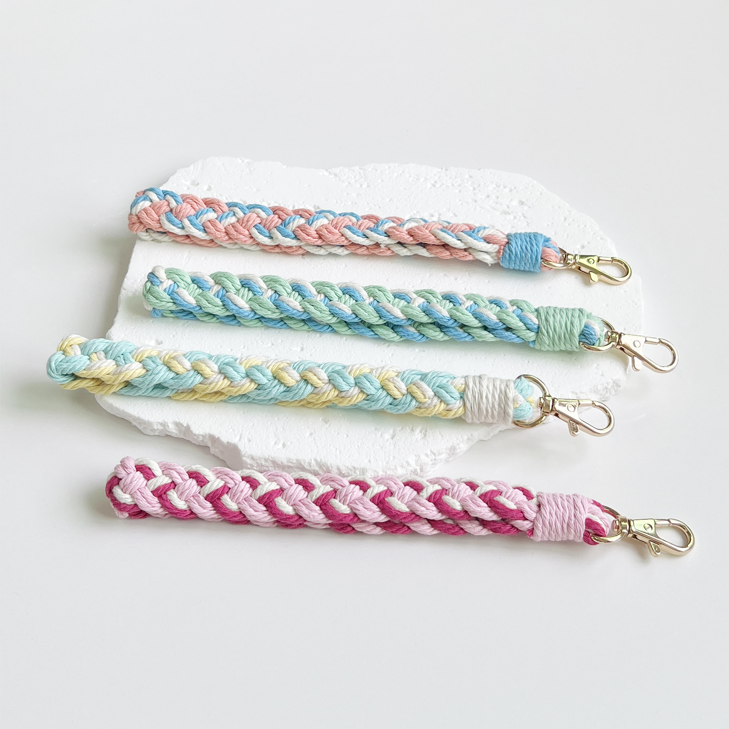 クロスボーダー新型カラー綿紐編みキーホルダー手首バンド携帯電話紛失防止ストラップ