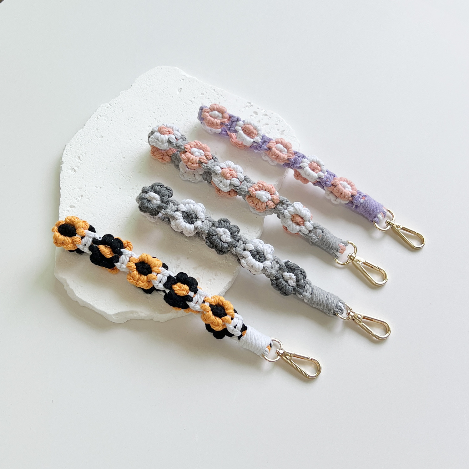 ボヘミアン手織りデイジーの花の携帯チェーンは芯の紐のキーホルダーを包みます。