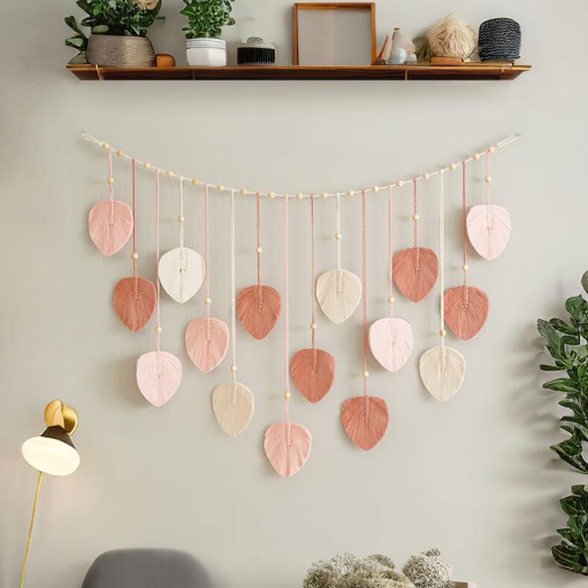 北欧風家庭装飾壁掛け手織り木の葉タペストリー部屋の壁面飾り民宿部屋の壁飾り