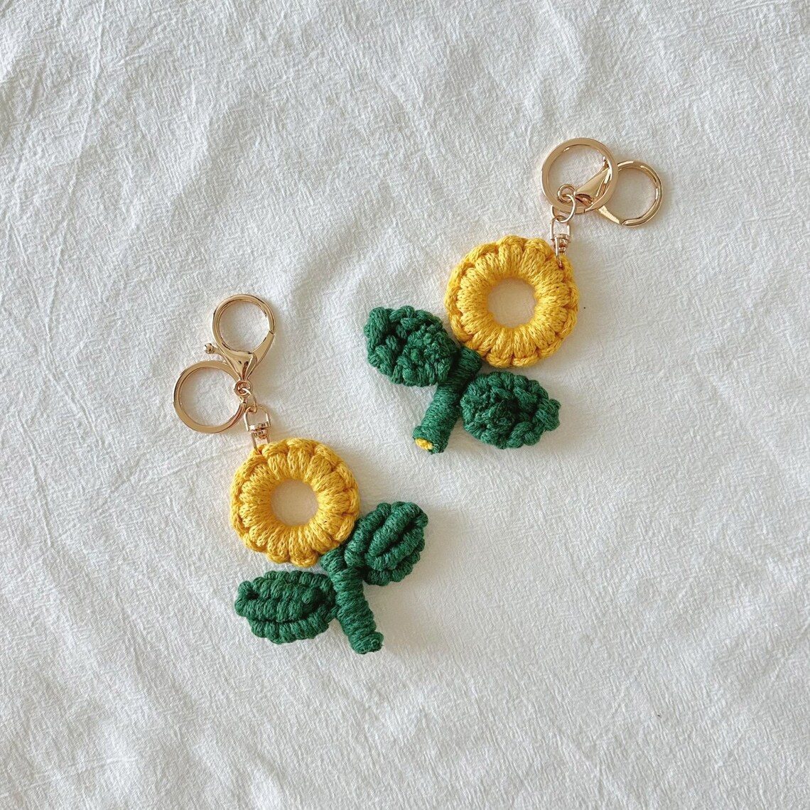 創意的なカバンのペンダントのヒマワリの花の太陽の花は手作業でボヘミアンのキーホルダーの対外貿易の商品の供給源を編みます。