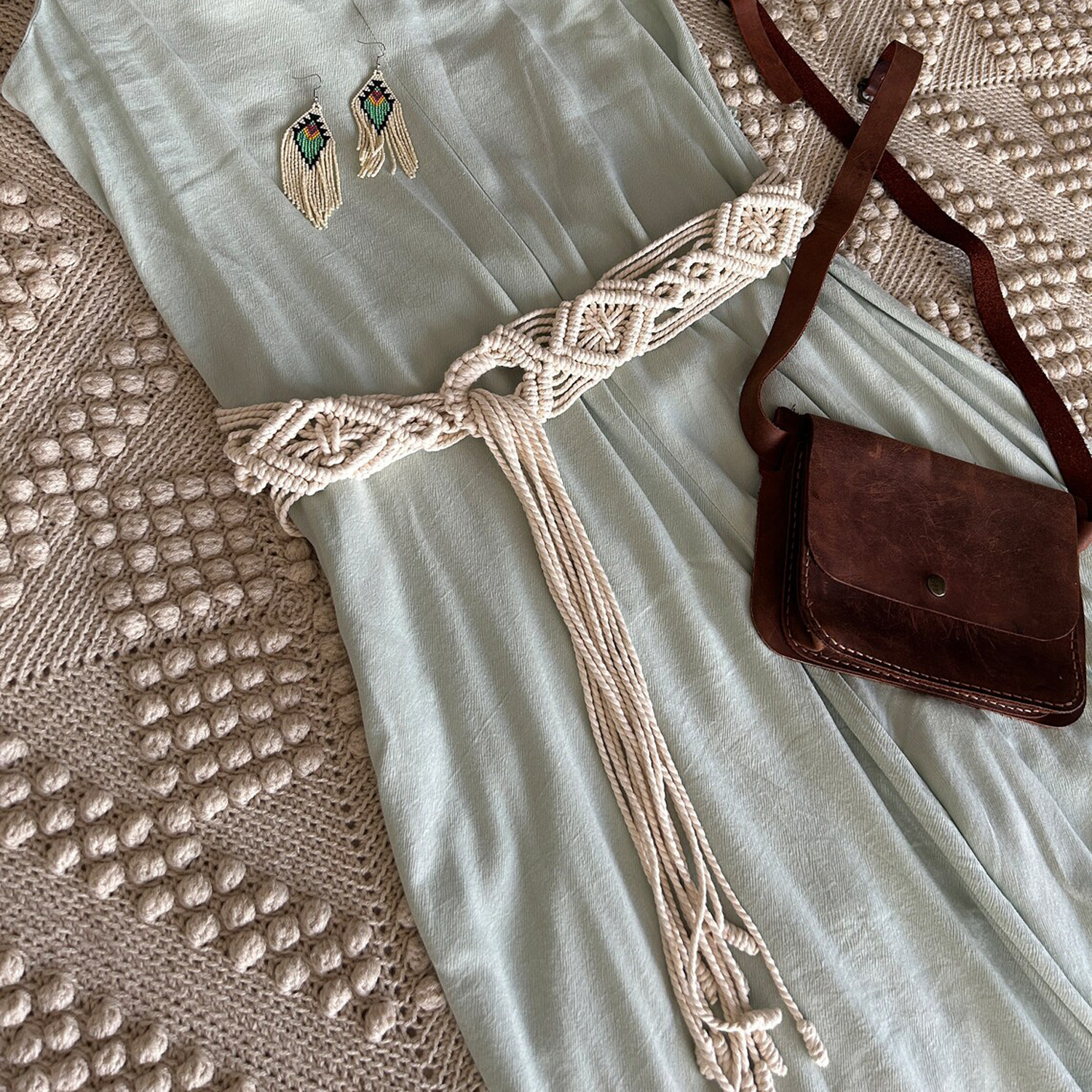 ボヘミアン風の手編み綿のベルトとスカートのファッションに合わせて、ウエストシールで花嫁のベルトを飾ります。